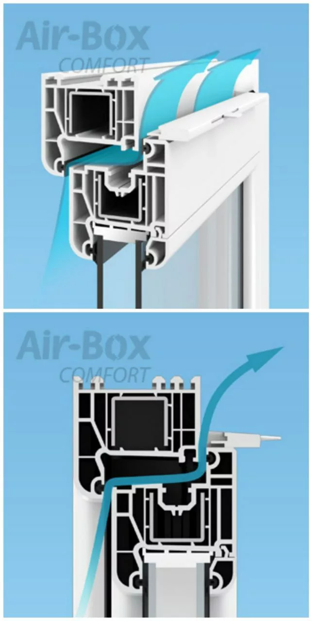 З вулиці в канал між стулкою та рамою потрапляє свіже повітря через отвір в області прилягання гумового ущільнювача. У цьому місці, шириною близько 20 сантиметрів, ущільнювач зрізається та змінюється на комплектний фрагмент. Через встановлений у верхній частині стулки припливний клапан повітря з вулиці потрапляє в приміщення, завдяки чому сконденсована на склопакеті волога буде зникати.